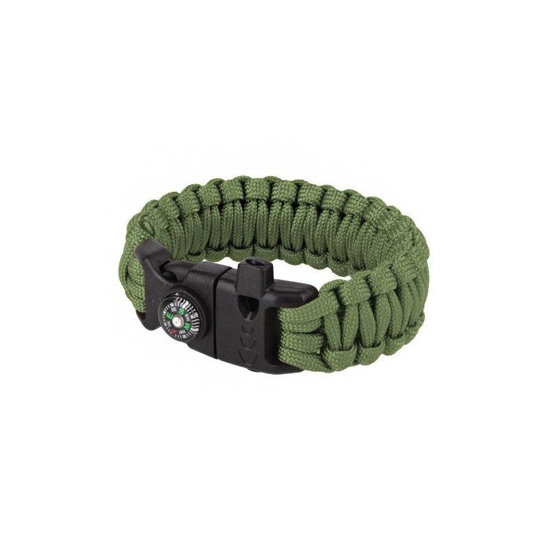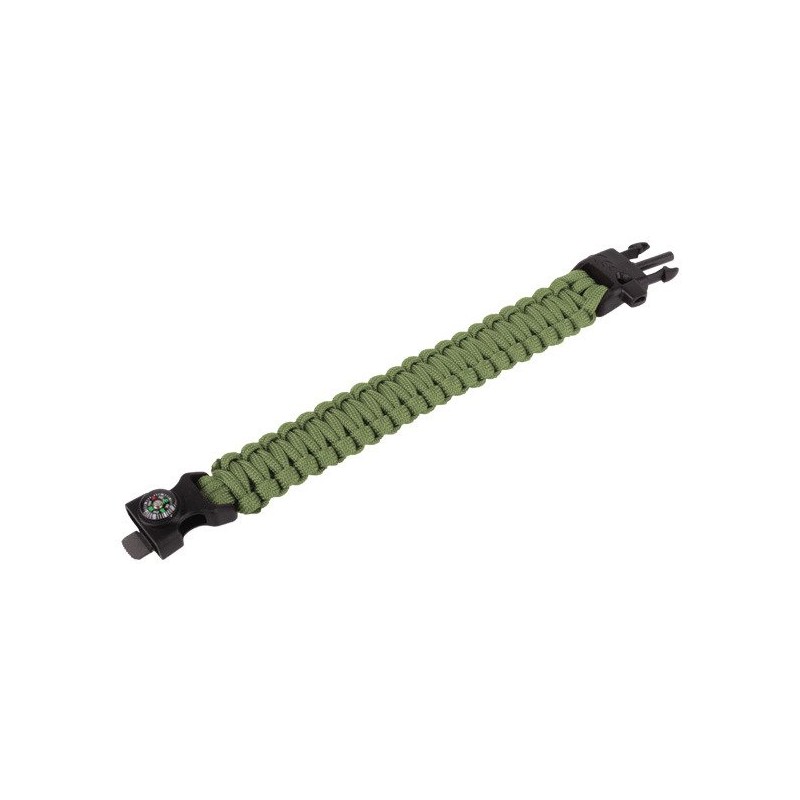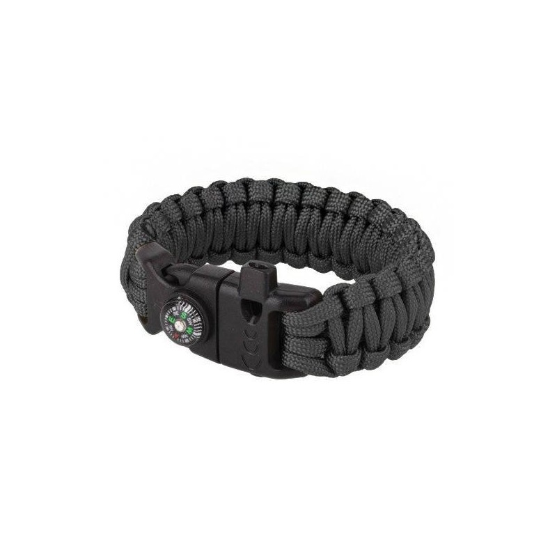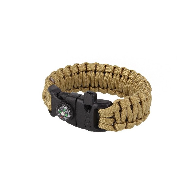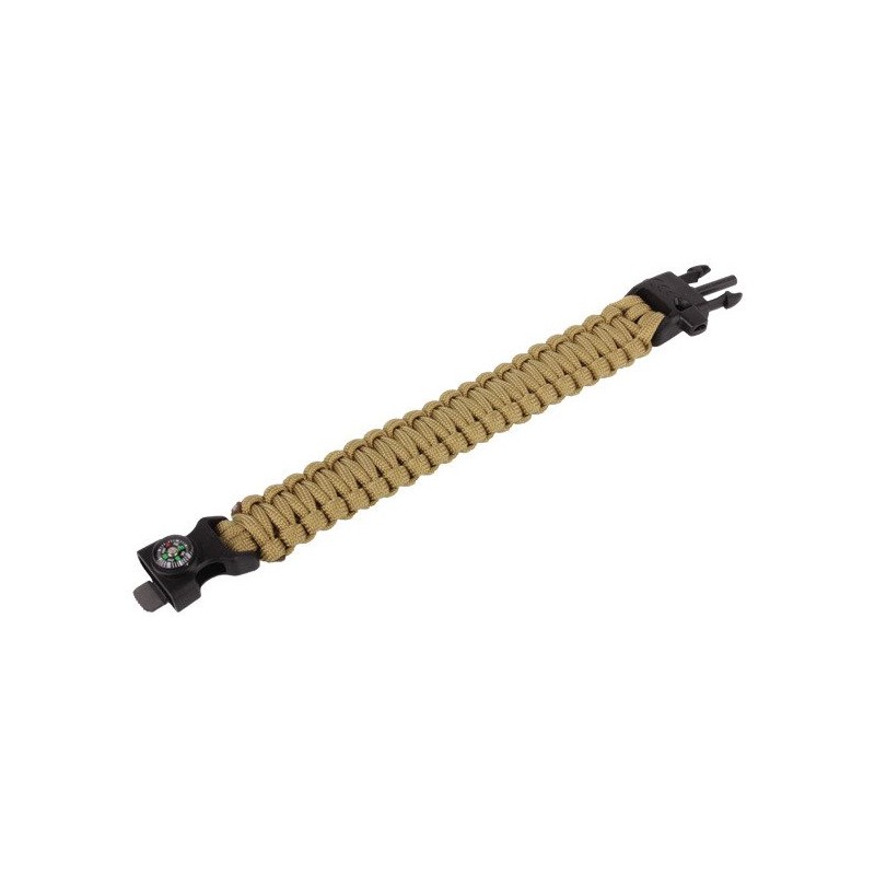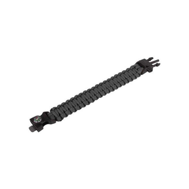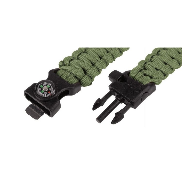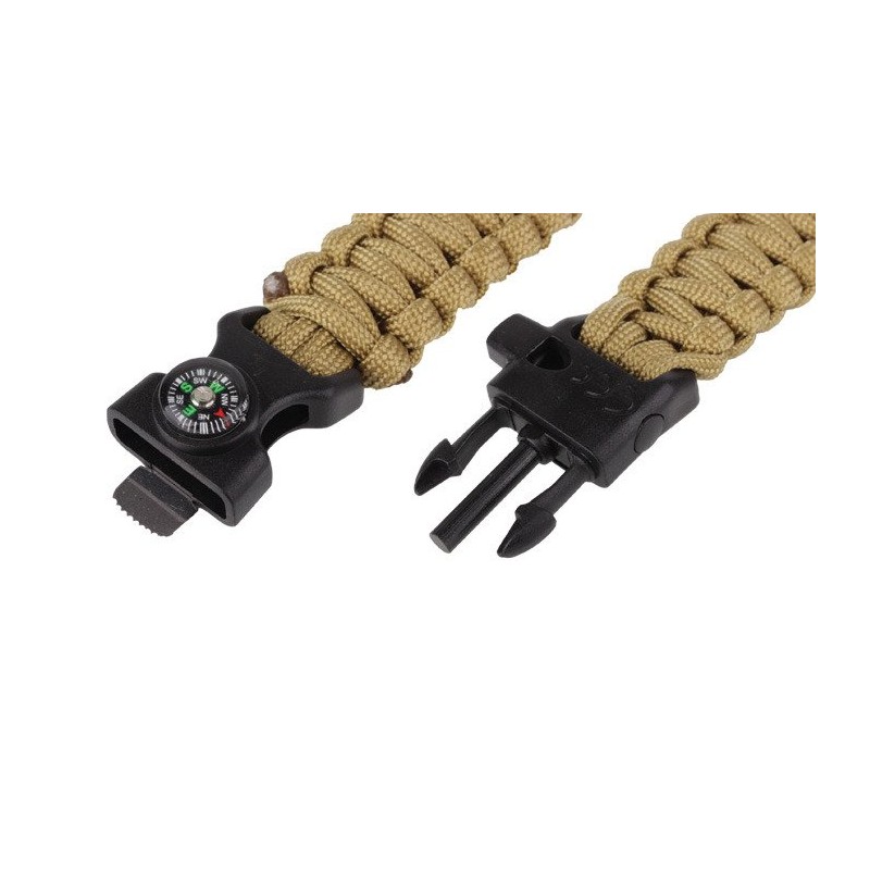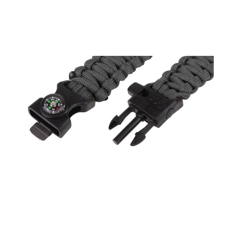 Bratara Survival realizata din paracord cu 7 siruri si catarama din plastic puternic. Catarama este prevazuta cu busola, fluier si firestarter.