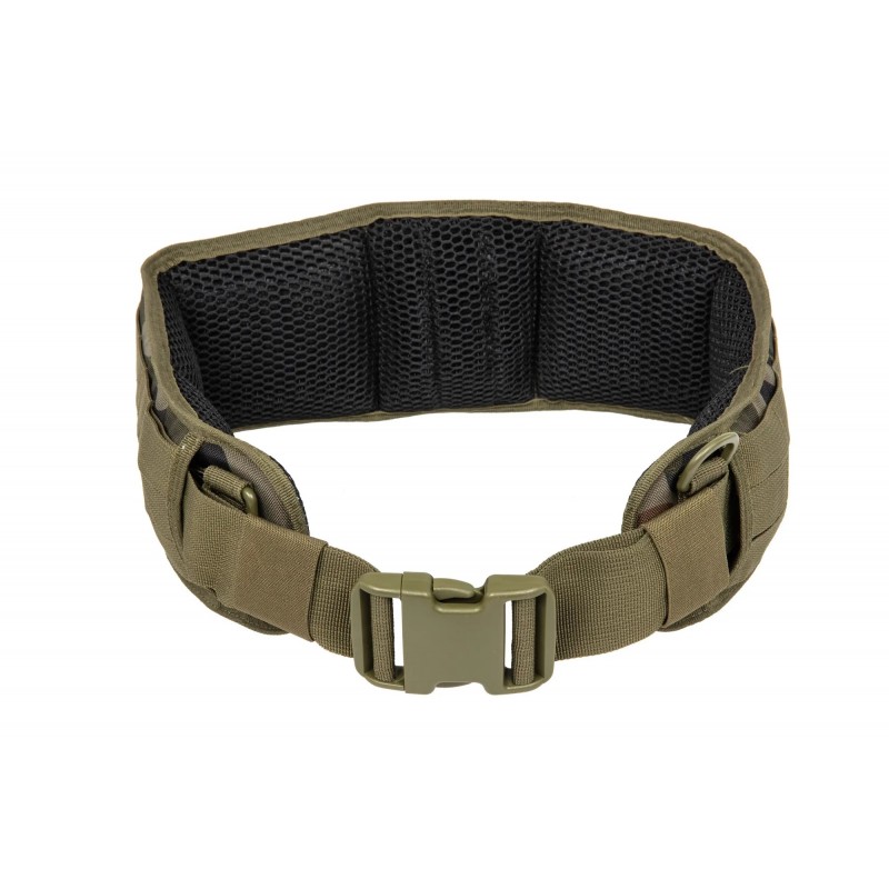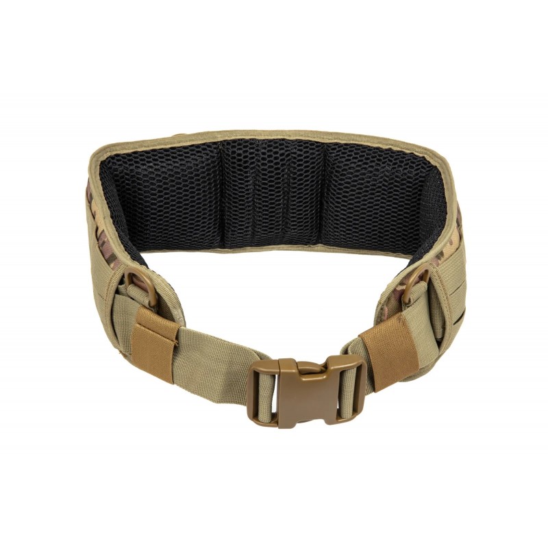 Curea fabricata din nailon. Modelul a fost captusit din interior cu un burete confortabil si moale acoperit cu plasa calico. Pe toata lungimea centurii au fost cusute dungi molle in sloturile cu numarul 57, ceea ce ne ofera o posibilitate foarte mare de personalizare.