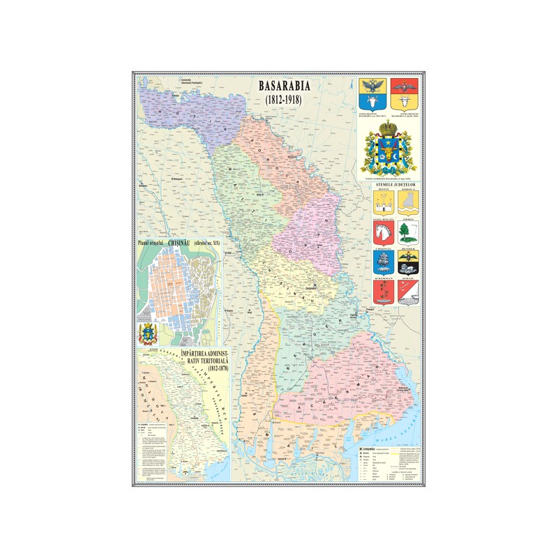 Harta Basarabiei in perioada dominatiei tariste (1812-1918).