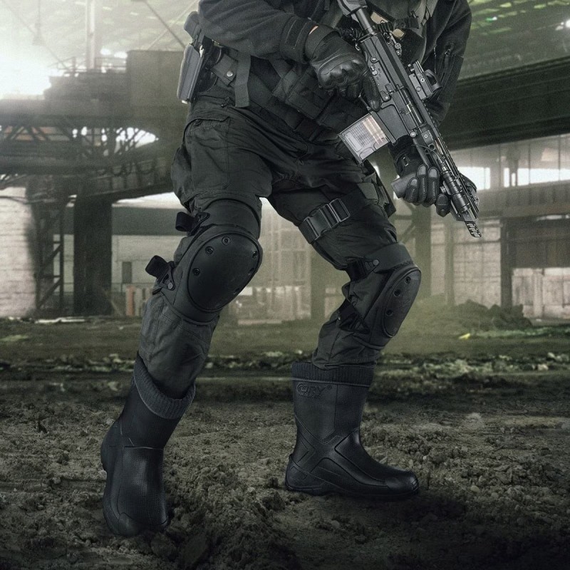 Cizmele sunt prevazute cu brant din fetru antiderapant, care se adapteaza stilului de mers si mentine temperatura potrivita in interior, oferind un confort exceptional in timpul utilizarii. Peretii grosi ai incaltamintei folosite au un impact decisiv asupra proprietatilor de protectie. O banda speciala a fost plasata pe calcai pentru a absorbi vibratiile.