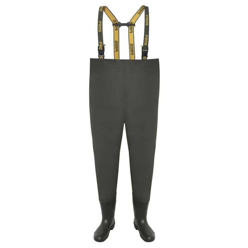 Waders inalti de la Pros, din Plavitex Heavy Duty. Este o tesatura cu o baza din poliester, care a fost acoperita cu PVC pe o parte. Se caracterizeaza prin rezistenta ridicata la rupere si cusaturi impermeabile. Compozitia materialului asigura o flexibilitate ridicata chiar si la temperaturi de pana la -50° C.