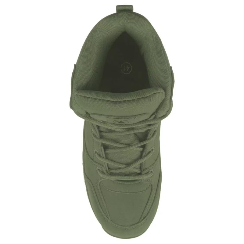Bocanci tactici inalti din poliester rezistent si usor.