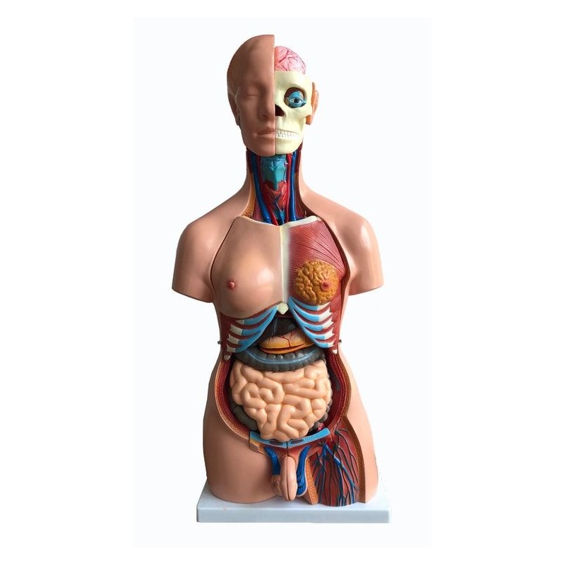 Modelul reproduce capul, gatul si torsul uman, cu prezentarea sistemului muscular, nervos, circulator, a organelor interne si a sistemului reproducator masculin/feminin. Este compus din 40 parti detasabile: encefal (8 parti), ochi, esofag, trahee, diafragma, sanul cu glanda mamara, vertebre cu nervii spinali (4 parti), plamani (4 parti), inima (2 parti), ficat, rinichi (2 parti), stomac (2 parti), intestine (4 parti), sistemul reproducator masculin (4 parti), sistemul reproducator feminin (3 parti, cu fetus), cu respectarea culorilor si a dimensiunilor naturale specifice fiecarui organ in parte.