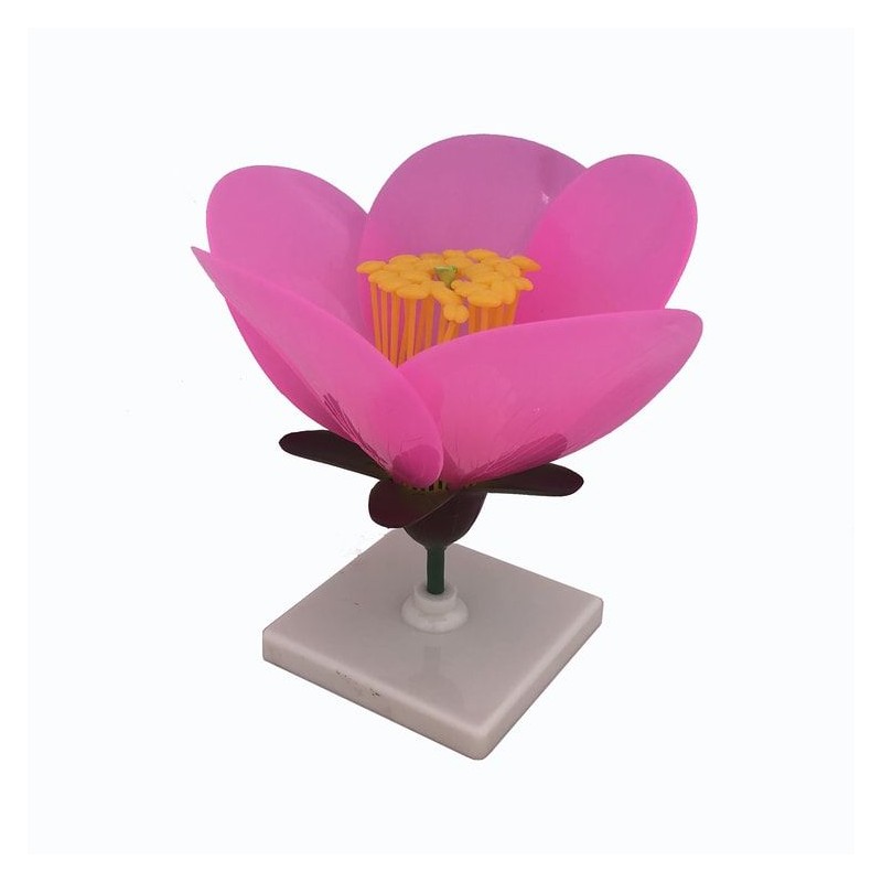 Modelul reproduce structura florii de piersic, cu componente detasabile (5 petale, sigma, polen). Reprezentarea supradimensionata a modelului fata de original ofera posibilitatea unei bune vizualizari si cunoasteri a structurii interne caracteristice florilor din clasa dicotiledonatelor.
