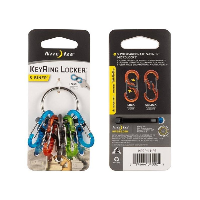 Acest Nite Ize Keyring include cinci MicroLock S-Biner din policarbonat, colorate si durabile, care se fixeaza in siguranta pe un inel solid din otel inoxidabil.