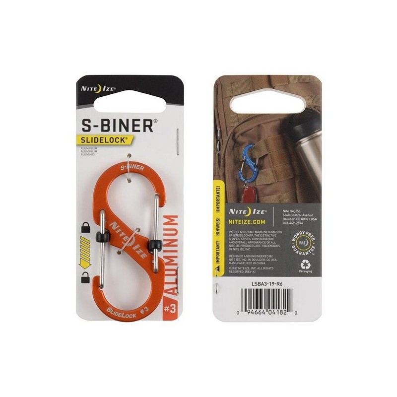 Carabina S-Biner din aluminiu cu inchidere blocata fabricata de compania americana Nite Ize.