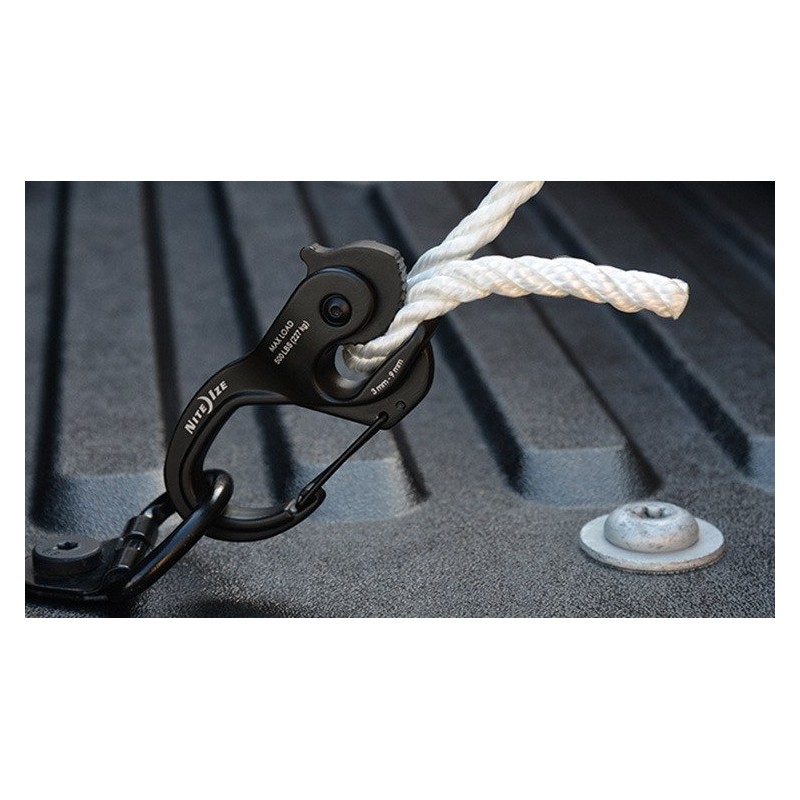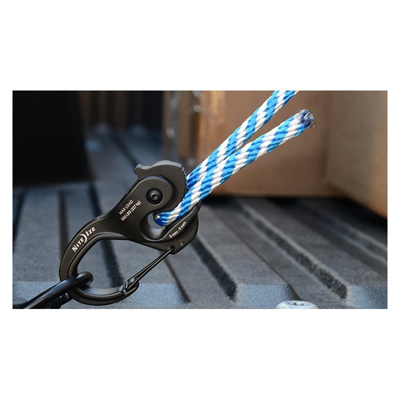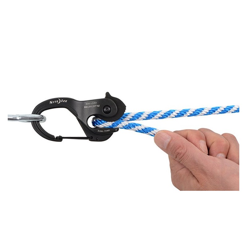 Clipul si poarta carabinierului sau la un capat si mecanismul cu came rotativa pe celalalt va permit sa ancorati carabiniera la orice carlig, inel in D sau bucla si sa treceti cablul prin came pana cand ajungeti la nivelul dorit de tensiune. Trageti ferm de cablu si camera se blocheaza in pozitie si ramane asa pana cand il eliberati prin rotirea camei si tragand in sus de cablu. Usor de reglat si reajustat CamJam XT este proiectat pentru durabilitate si rezistenta superioare si poate fi folosit si reutilizat de sute de ori, in sute de moduri.