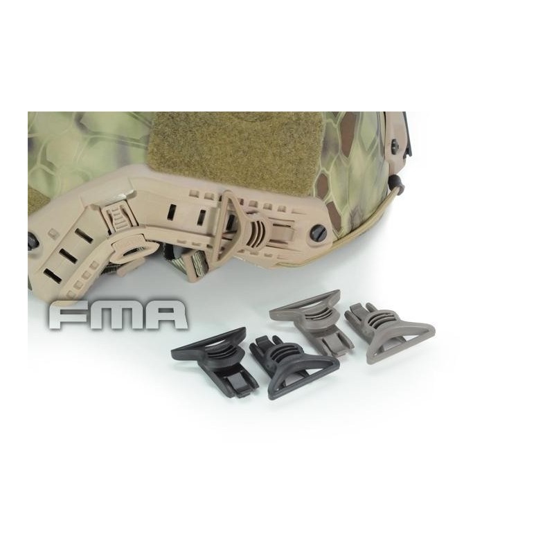 Un set de două cleme pivotante pentru ochelarii de protecție cu o bandă de 36mm. Clemele sunt proiectate pentru a fi montate pe șinele laterale ale căștilor de protecție de tip FAST.