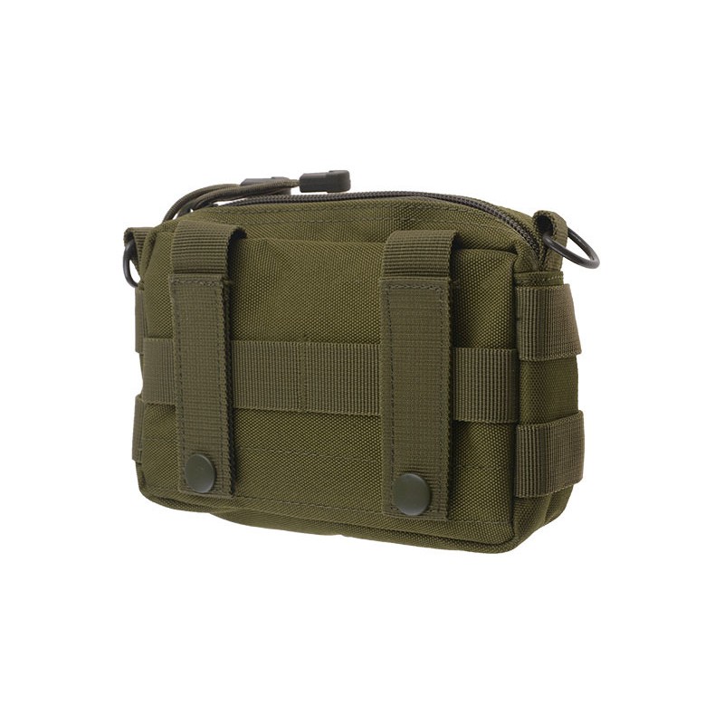 Pouch universal realizat din nylon durabil. Pe partea exterioara prezinta benzi molle si un panou velcro care permite atasarea. Sistemul de montare utilizat este compatibil cu sistemul molle datorita caruia pouchul este compatibil cu aproape toate echipamentele tactice moderne. In partea din fata au fost cusute curele orizontale permitand atasarea unui echipament suplimentar. Pouchul se inchide cu un fermoar.