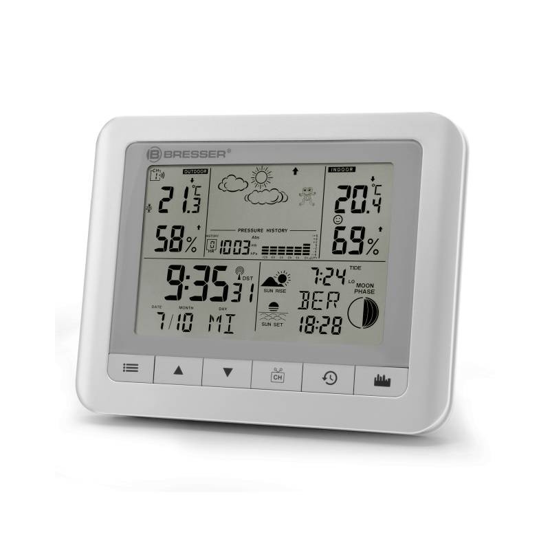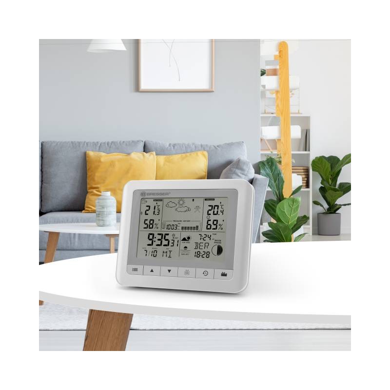 Nu trebuie sa te multumesti doar cu temperatura si umiditate (fiecare pentru interior si exterior). ClimaTrend WF prezinta numeroase date meteorologice dintr-o singura privire. Datorita afisajului LCD care este aranjat in 5 sectiuni, claritatea este asigurata in ciuda abundentei de informatii. Reprezentarea simbolica a vremii actuale, a temperaturii, umiditatii si a tendintei vremii, precum si a climatului interior si a fazelor Lunii este intuitiva.