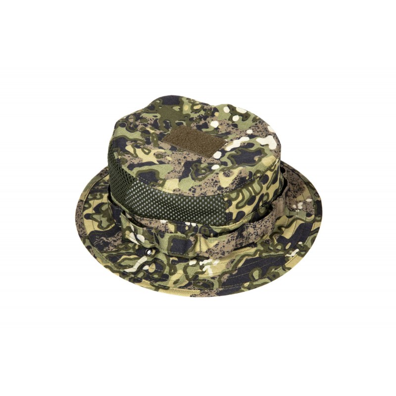 Colectia de uniforme tactice produsa de compania poloneza MASKPOL SA ofera utilizatorului o croiala confortabila si functionala combinata cu un singur tip de imprimare de mascare MAPA de pe piata. NHM-02 este o palarie clasica de tip boonie realizata dintr-un material compus din 50%bumbac/50%poliester, intarita suplimentar cu o tesatura Rip-Stop, care creste durabilitatea si rezistenta la rupere.