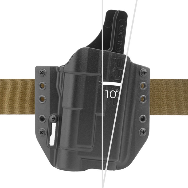 Toc OWB pentru pistol Glock 19, 23, 32, 17, 22, 31 cu lanterna TLR-1 HL pentru dreptaci de la renumitul producator Bravo Concealment. Tocul tip tragere se caracterizeaza printr-o mai mare siguranta de utilizare in comparatie cu tocurile cu buton.