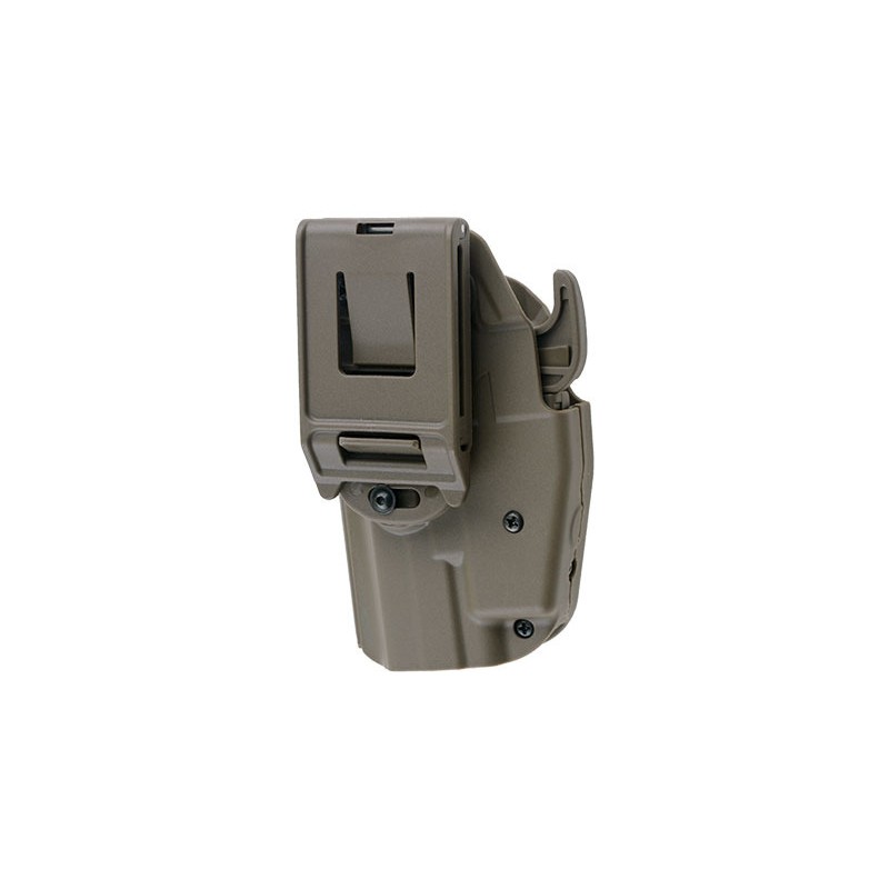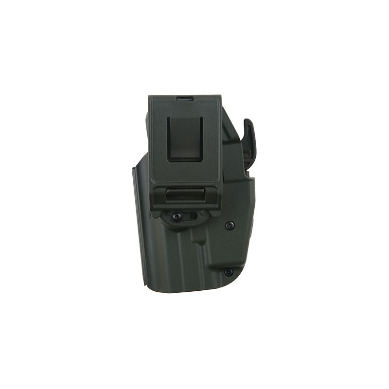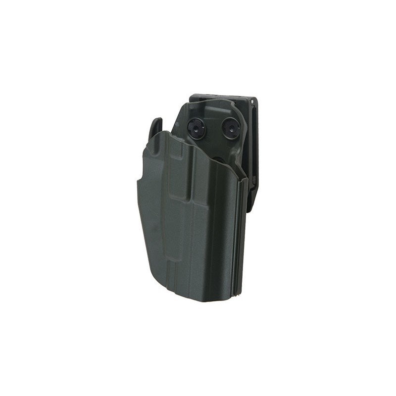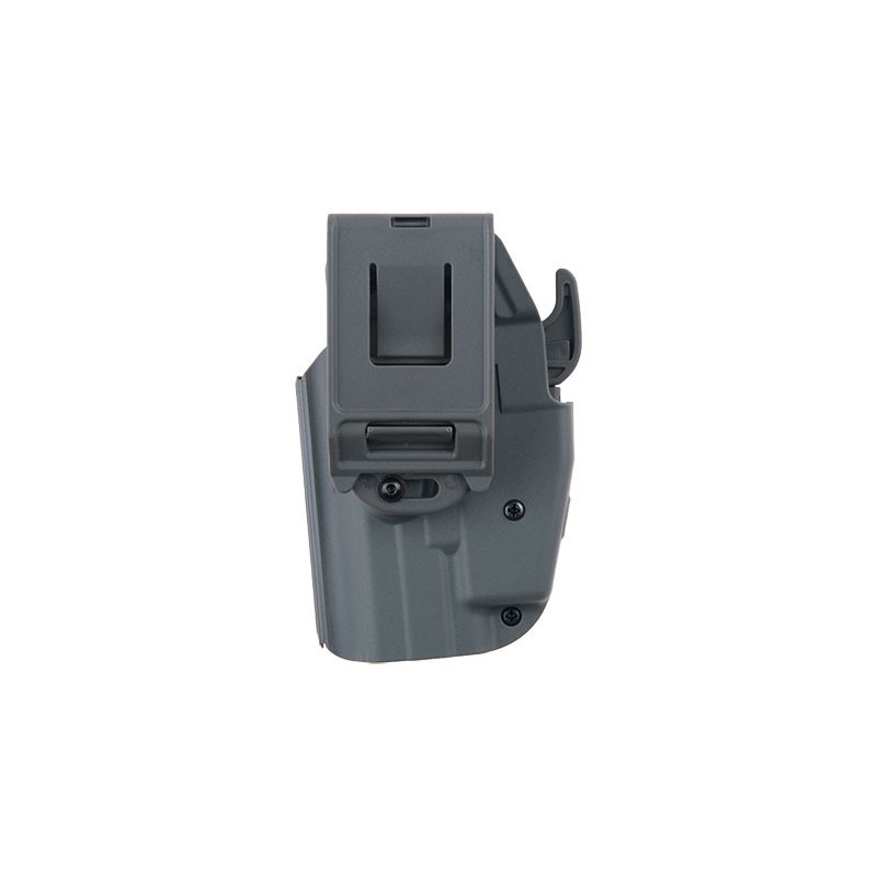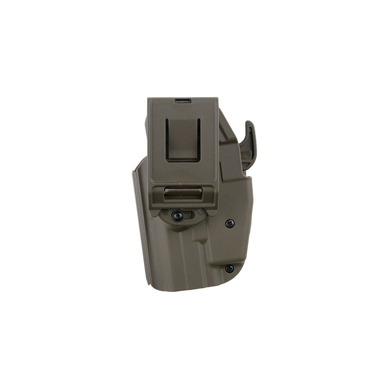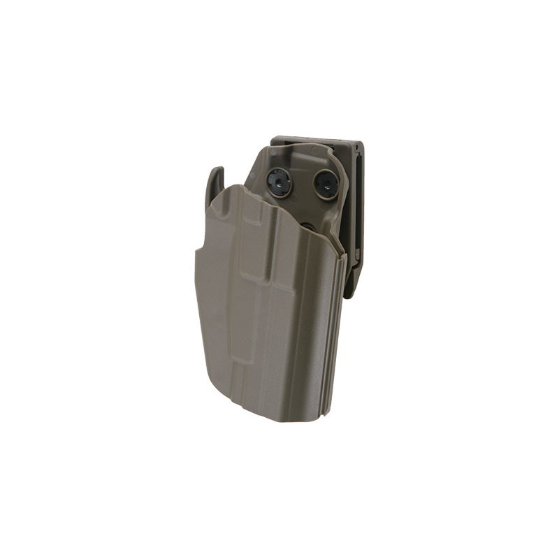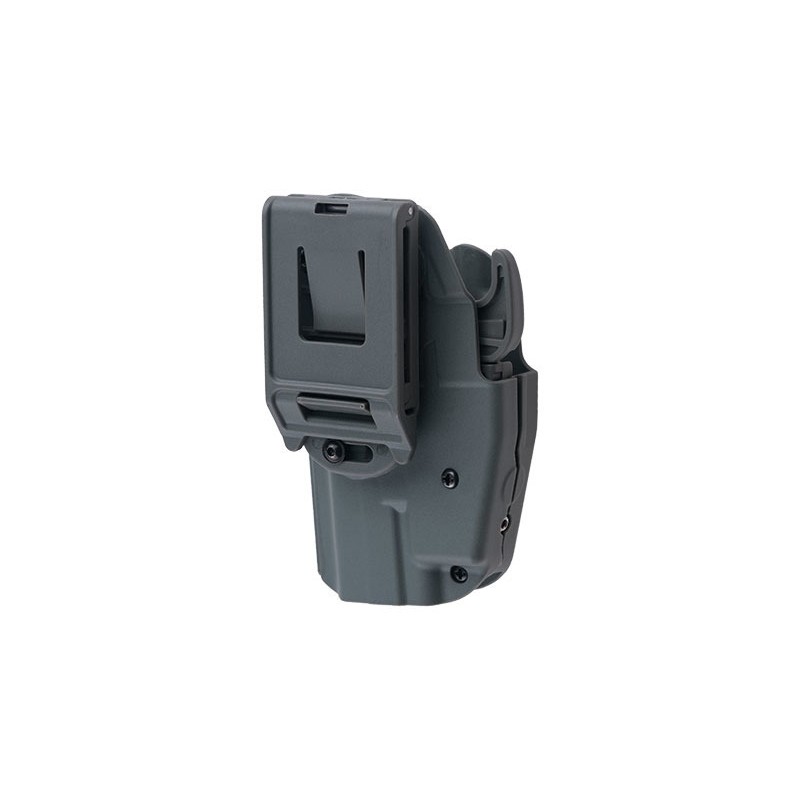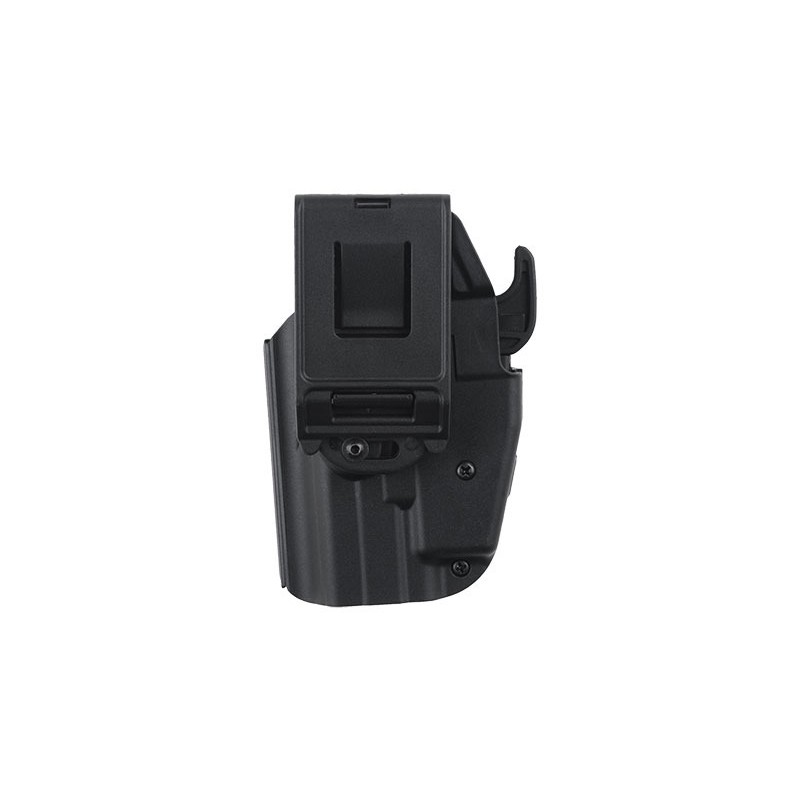 Tocul universal este realizat din nailon durabil. Datorita constructiei sale universale, este compatibil cu diferite modele de pistoale, cum ar fi: G19 / 23/38, H & K 45, M & P 45, XDS 9 mm sau H & K USP. Utilizatorul poate adapta cu usurinta tocul la modelul de pistol propriu prin reglarea latimii folosind doua suruburi, precum si un locas detasabil in apropierea blocarii.