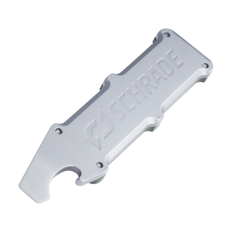 Instrumentul de taiere este o lama de modelare Xacto inlocuibila, extensibila prin apasarea unui buton. Manerul conturat, care adaposteste lama, este realizat dintr-o combinatie de aluminiu si compozit G10. Acest lucru permite operarea confortabila, inclusiv cu manusi tactice, fara riscul de alunecare a mainii. In plus, manerul vine si cu o unealta suplimentara, care combina functiile unei rangi in miniatura si ale unui deschizator de sticle.