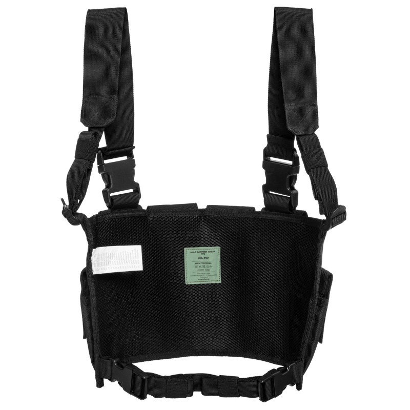 Vesta tactica Chest Rig echipata cu patru buzunare mari, de exemplu, pentru incarcatoare AK47, si doua buzunare mai mici pentru incarcatoare de pistol. Modelul dispune si de mai multe inele D care pot fi folosite pentru a atasa accesorii suplimentare.